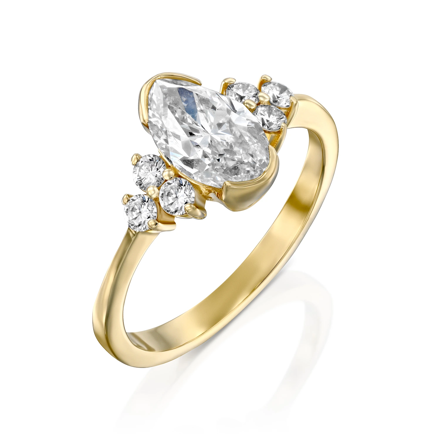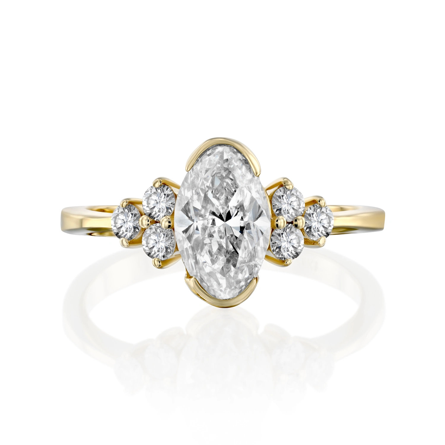 יהלום אובל 1.50ct מעוטרת בעוד 6 יהלומים מצידיה.