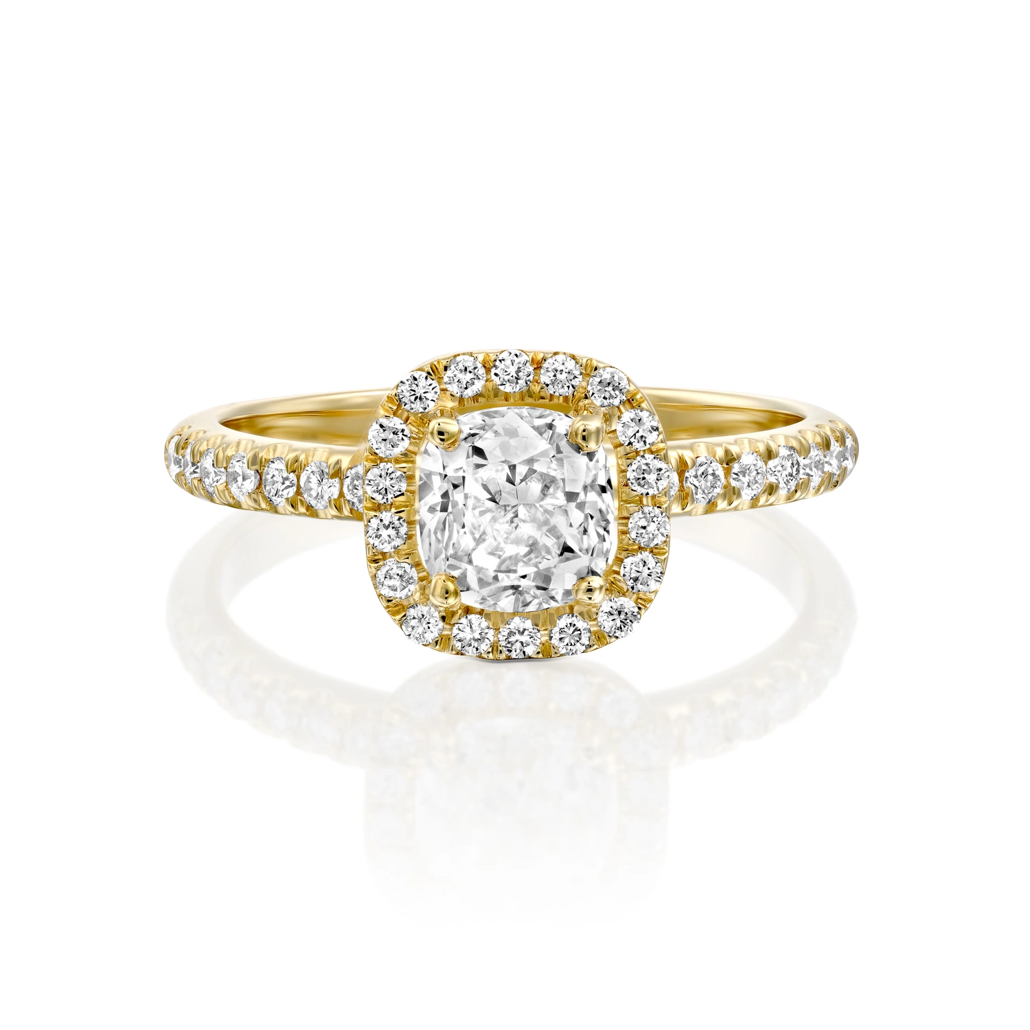 מסביבה יהלומים קטנים משובצים על הילה וגם על צידי הטבעת.