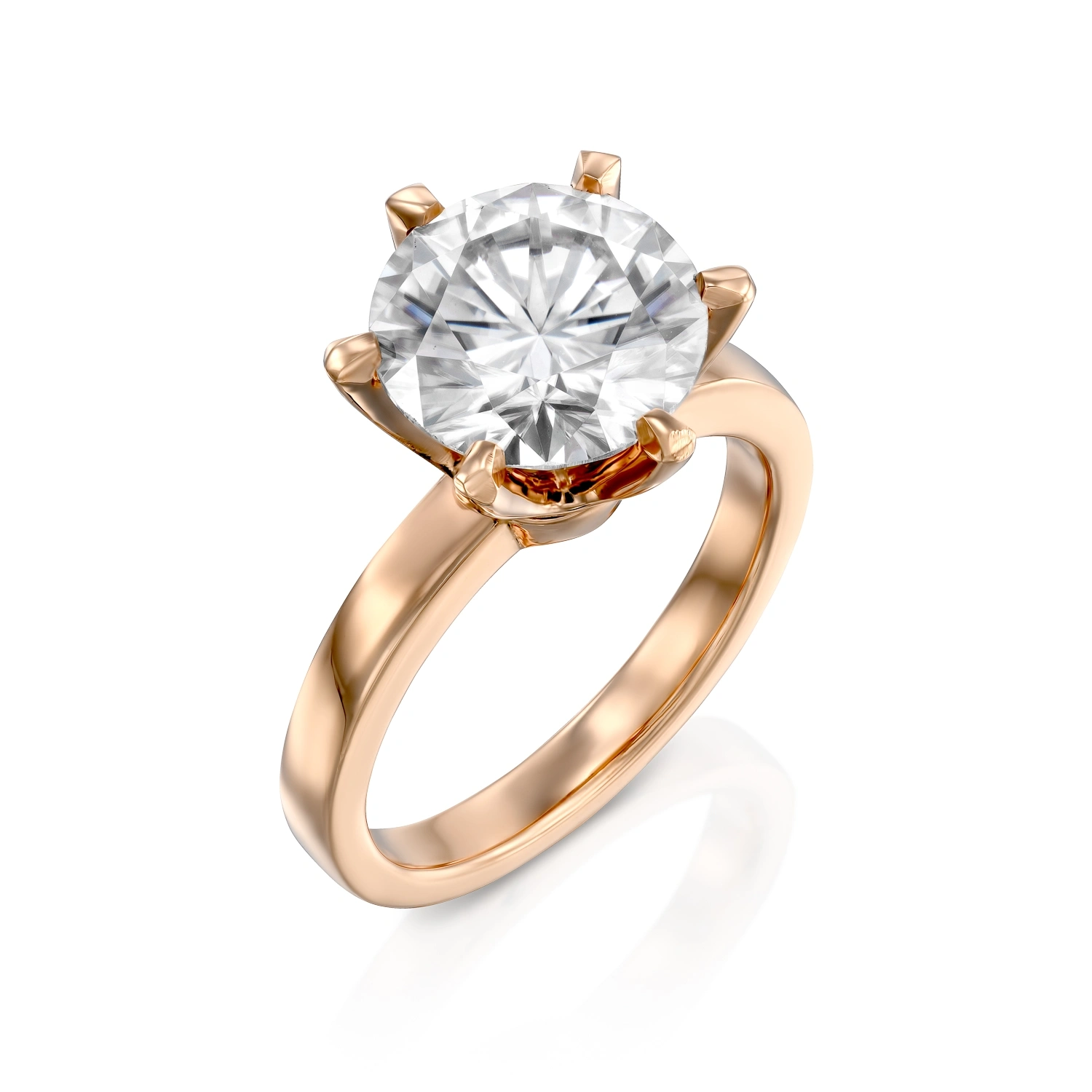 טבעת מרשימה מאד, משובצת ב6 שיניים יהלום מעבדה מרכזי 3 קראט בחיתוך עגול