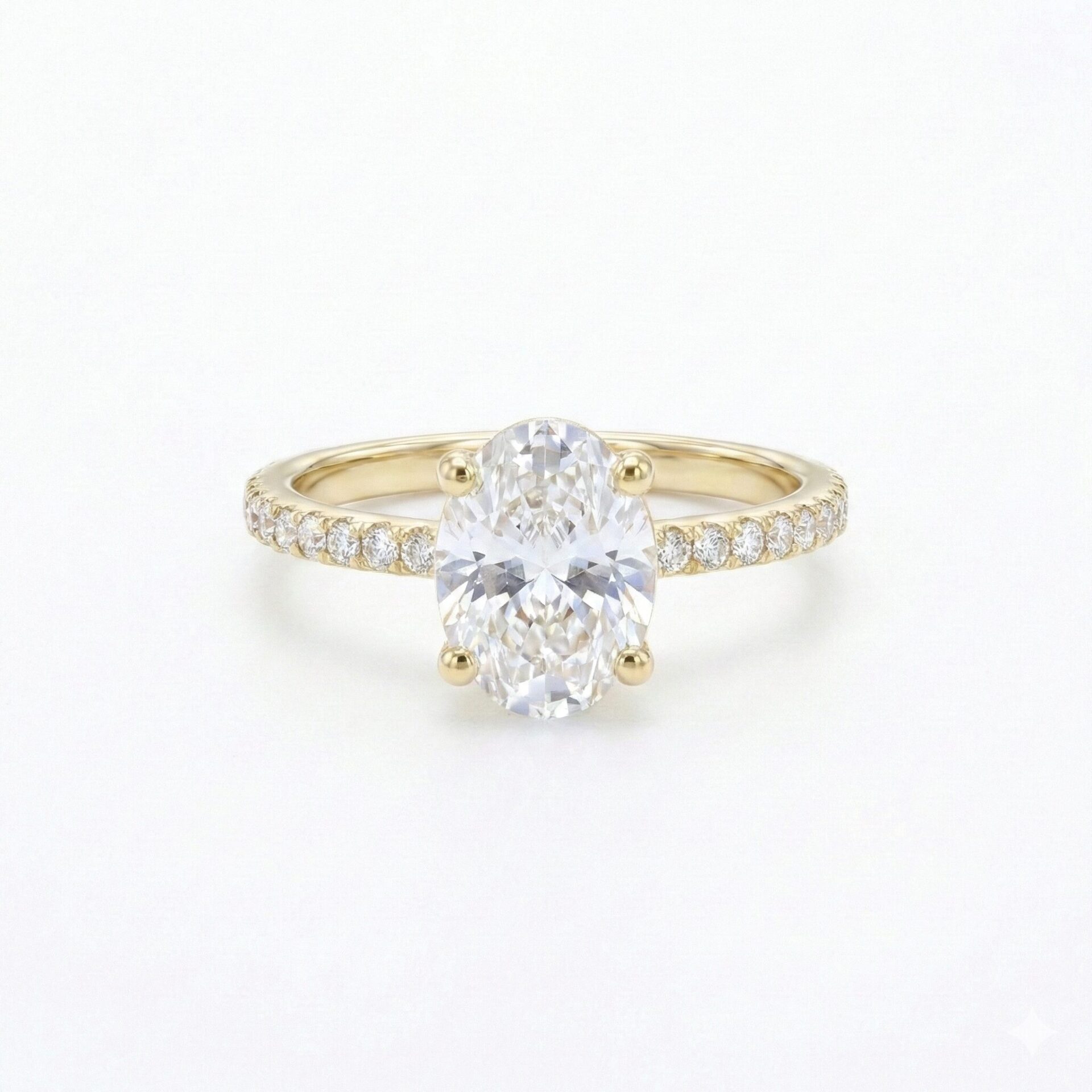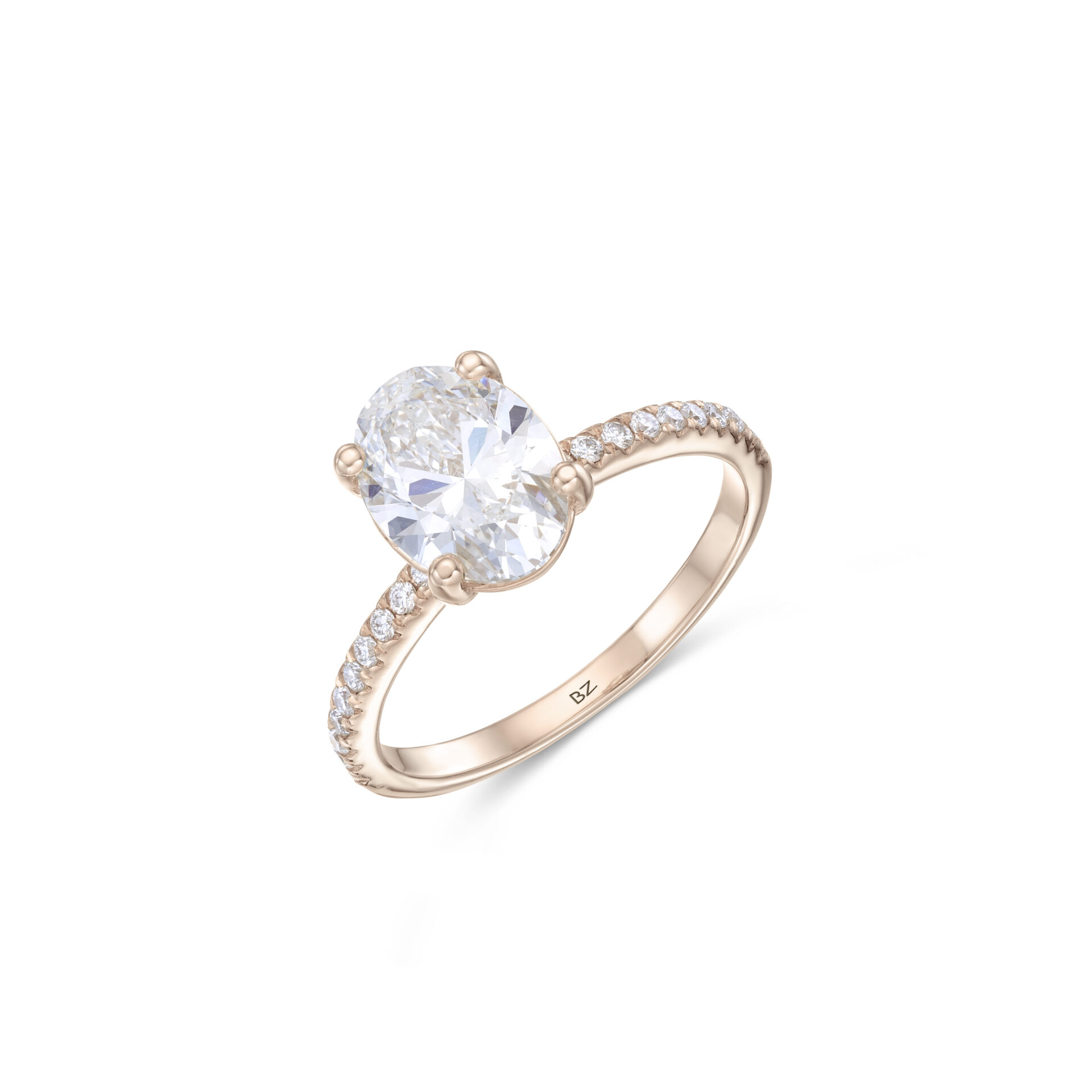 טבעת אירוסין 'סופיה' – יהלום אובלי 1.5 קראט משובץ בצידי הטבעת