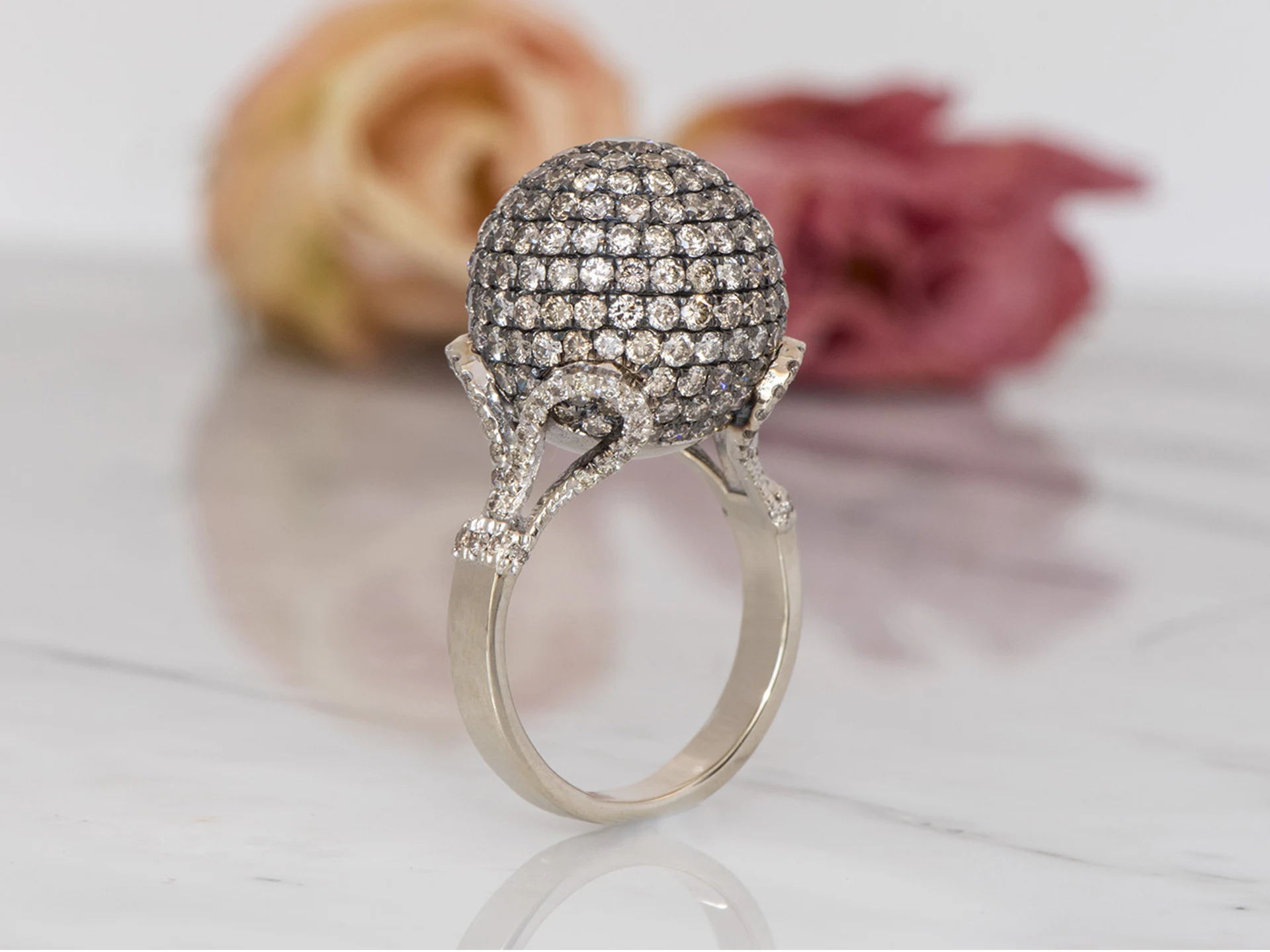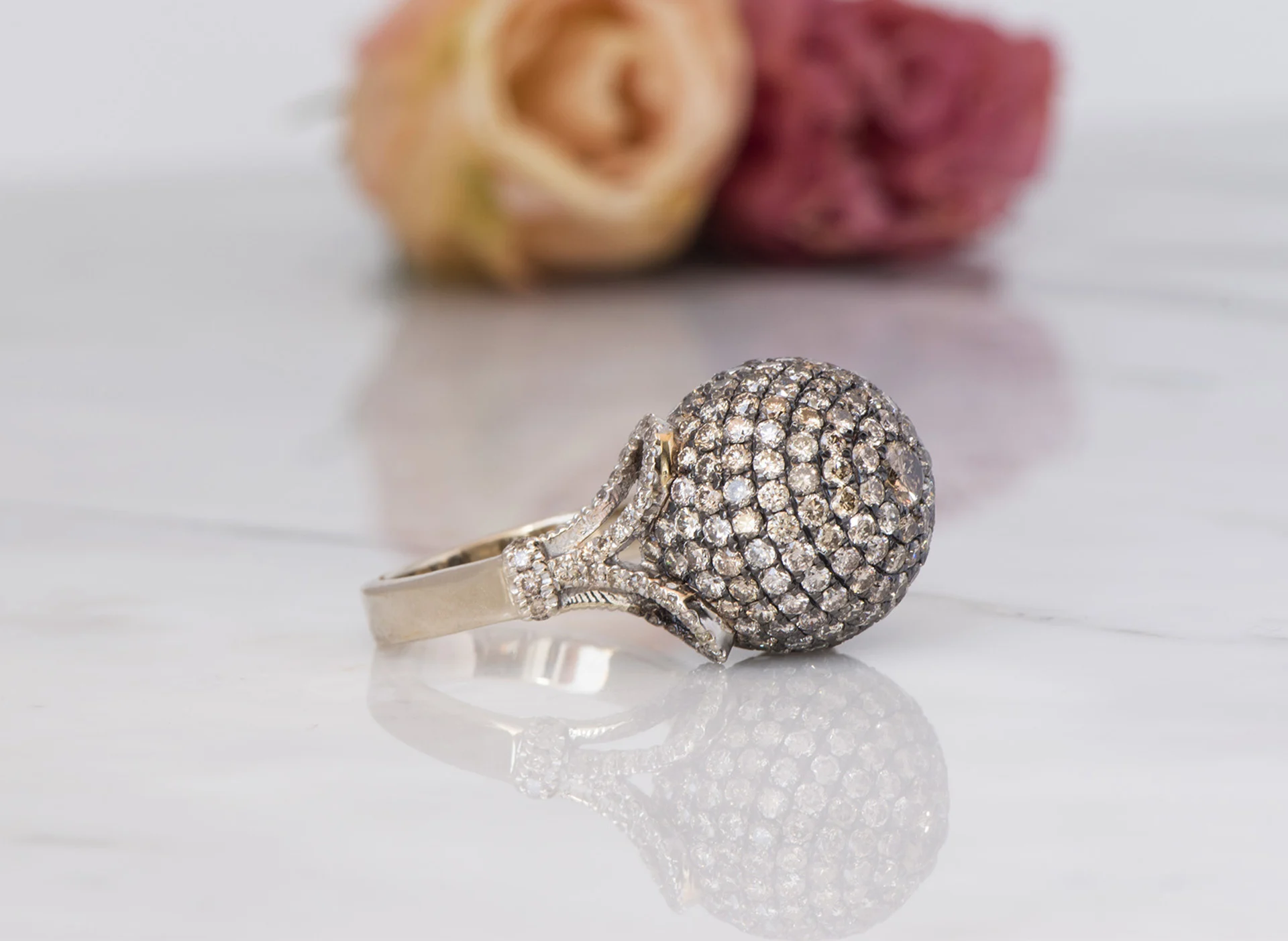 יהלומים בצבע שמפניה משובצים בפווה צפוף יוצרים ניצוץ מיוחד ומגוון.