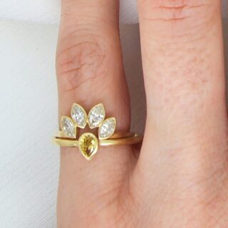טבעת "הלו" בצורת טיפה מעוצבת ב 14K זהב צהוב