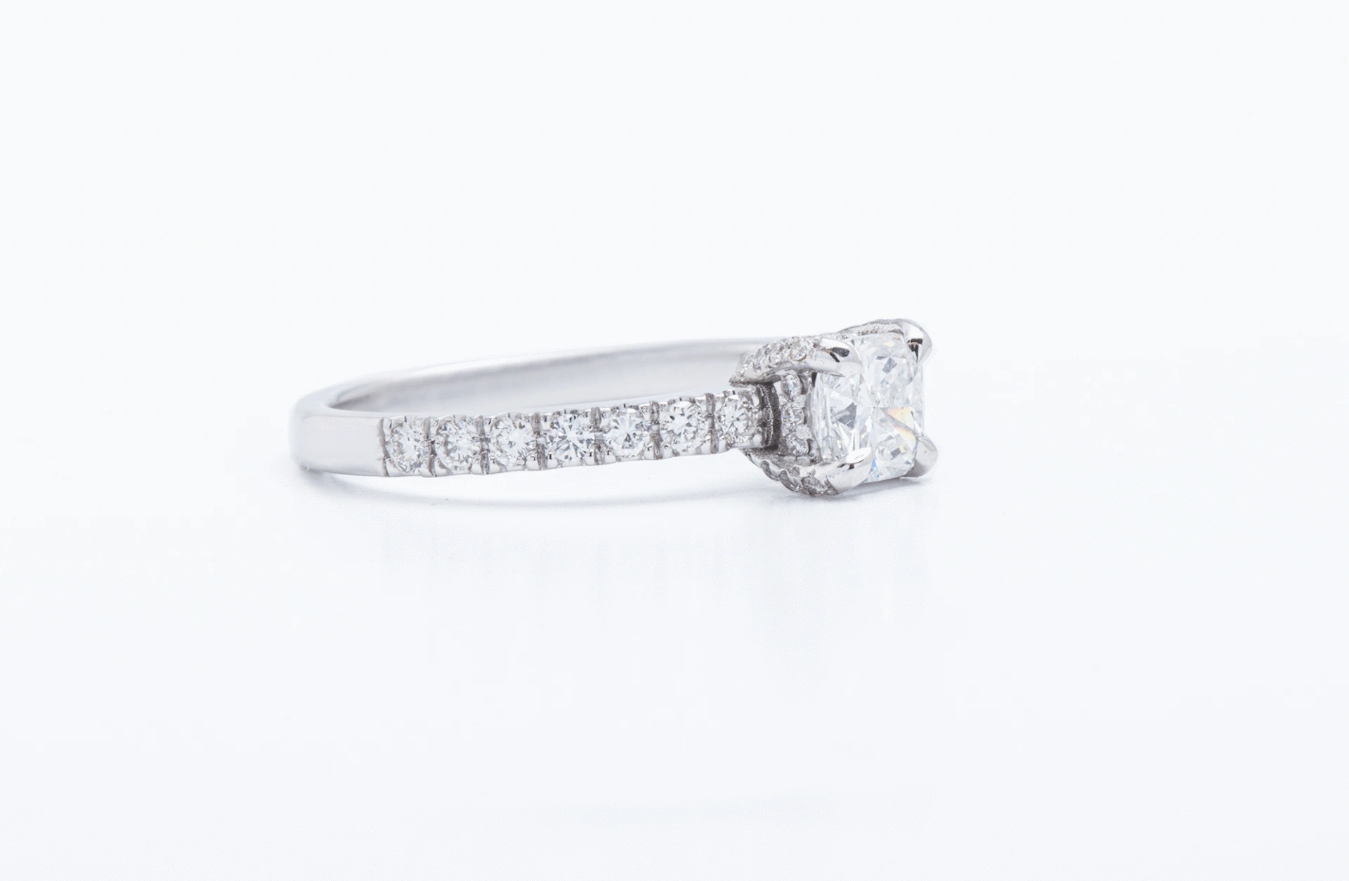 טבעת עדינה ומיוחדת משובצת יהלום מרכזי של 0.40ct מתחת ליהלום חגורה משובצת יהלומים קטנים למראה מתוחכם במעט, יהלומים קטנים משובצים גם בצידי הטבעת